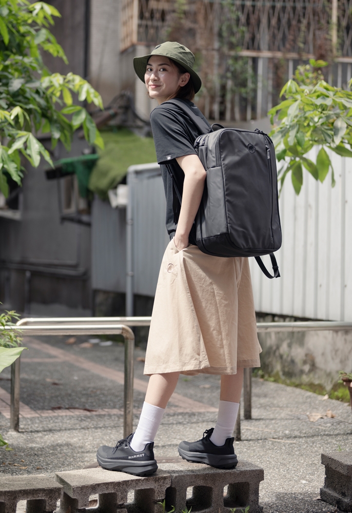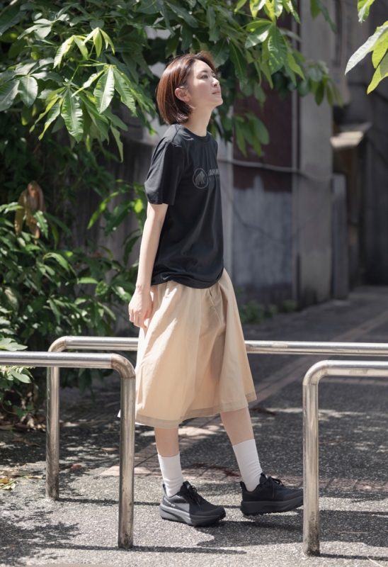 上身搭配 QD Logo Print T-Shirt(黑) 與 Transporter HS Jacket(黑),延續極簡配色與俐落線條,機能外套具備防風、防潑水機能,應對早晚溫差或突變天氣毫不費力。腳上穿著 Aenergy Mtn Low GTX 防水低筒鞋,搭配 Seon Transporter 25 背包,打造一套從城市走到旅途都適用的全天候 Look。