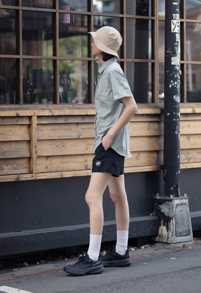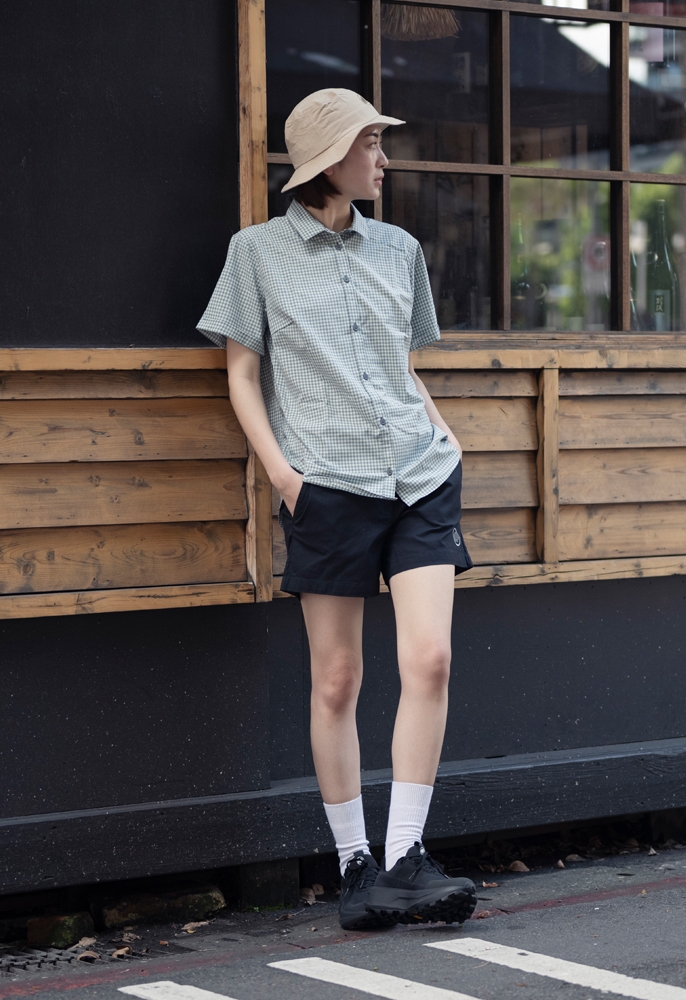 下身搭配 Tamaro 休閒短褲,雖然是略帶挺度的有機棉與麻混紡材質,但穿起來涼爽、耐動、不易皺。從戶外行走到日常通勤,舒適度都沒話說。