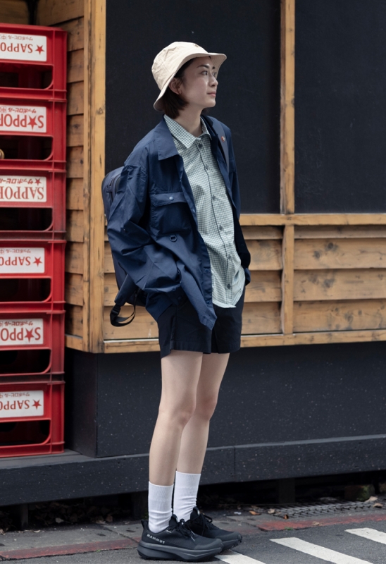 外層加上 Highland 長袖襯衫,春夏當成輕外套穿剛剛好。布料輕薄不悶熱,可防紫外線UPF50+,加上寬鬆剪裁,兼顧機能與造型,想加強防曬,又不想穿太厚,有時候這樣一件就夠了。