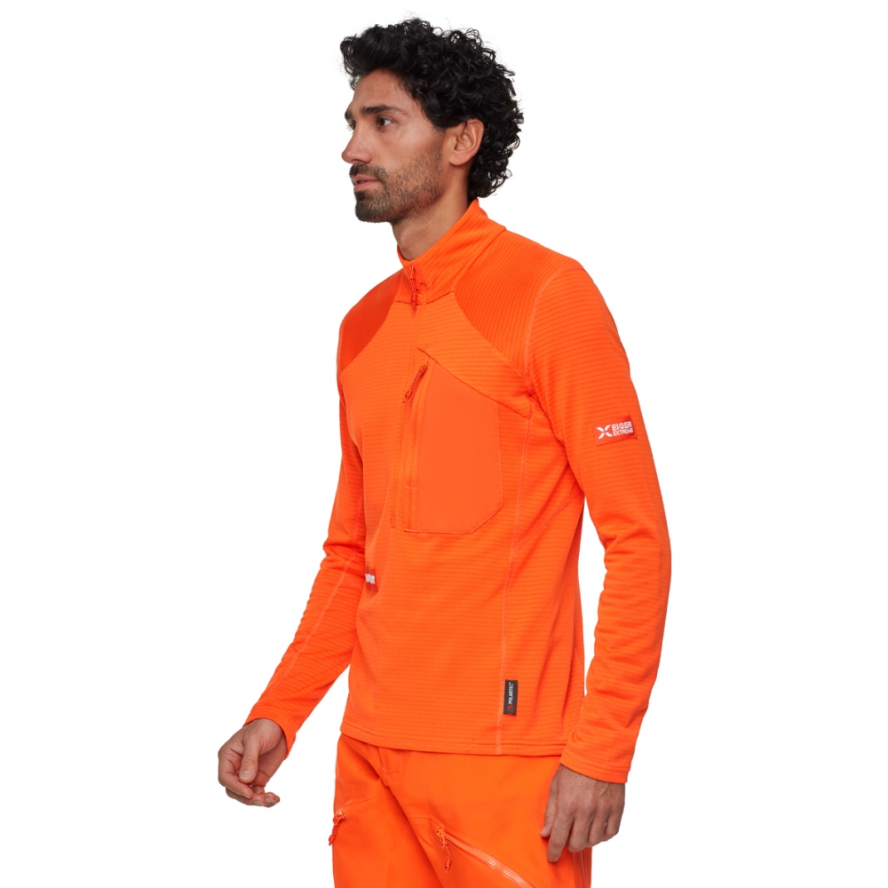 Eiger Nordwand Advanced FL Half Zip Pull 極限艾格-透氣快乾長袖半襟上衣,是全年分層穿搭系統中的核心單品。寒冷時作為基層穿著,Polartec® Powergrid™ 彈性面料能迅速將多餘濕氣帶離皮膚,保持乾爽與溫暖;溫暖氣候下,也可作為輕薄內層單穿,適合夏季攀登。錯開的肩部接縫設計減少背包壓力點接觸,胸前彈性口袋方便快速取用隨身物品。Eiger Nordwand Advanced FL Half Zip Pull 與運動員共同設計,兼具多功能性,是高山登攀的理想選擇。
