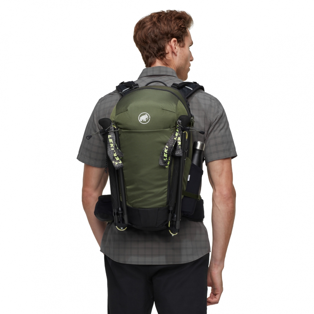 Lithium系列背包,2022春夏全新改版,增加收納和可拆腰帶設計,彈性對應各種行程路線安排!為因應MAMMUT WE CARE企業責任於2050年前達成Net Zero淨零排放的目標,Lithium採用回收纖維製作,並使用不含PFC的防潑水表面處理。